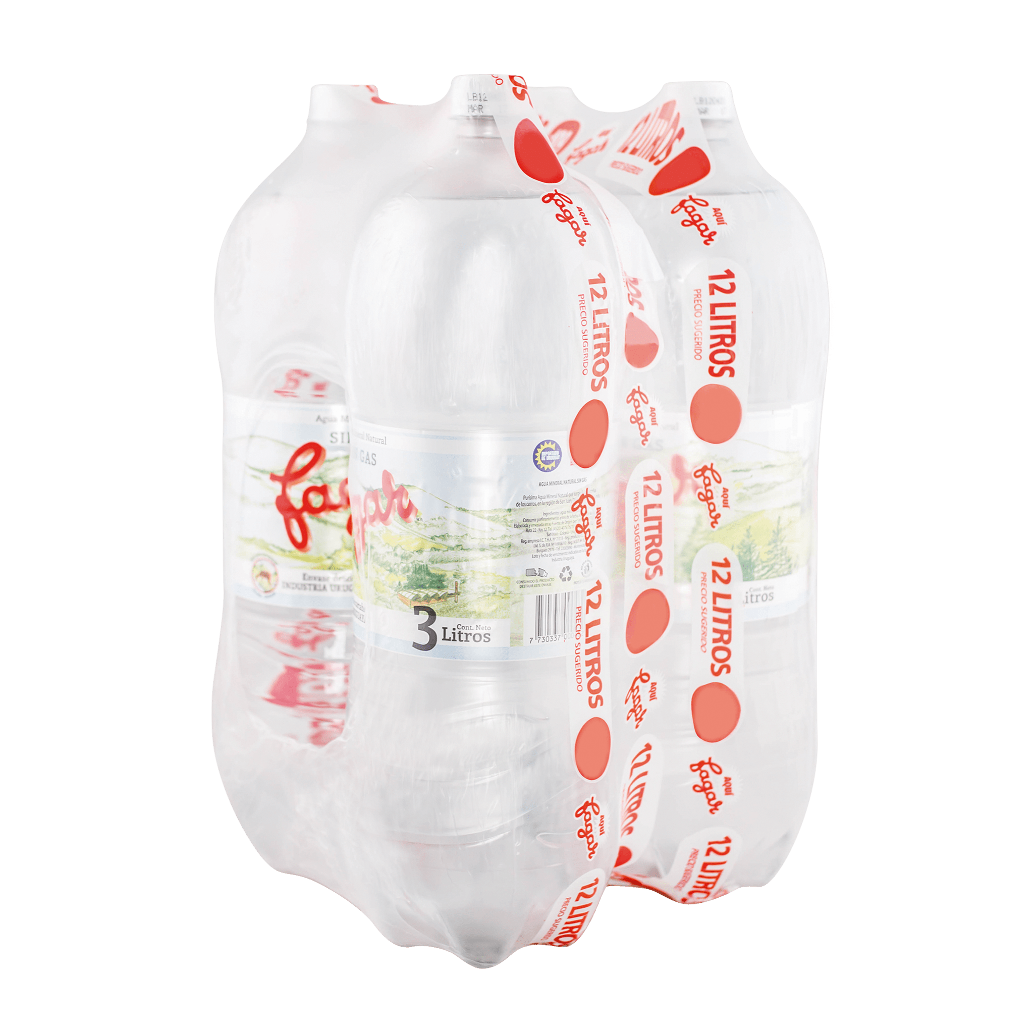 por pack de 4 botellas de 3L (12L). Equivale a 2 bidones de 6L.